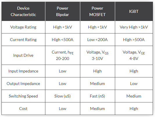 IGBT, Perangkat yang relatif baru dalam elektronika daya, sebelum munculnya IGBT, Power MOSFET dan Power BJT umum digunakan dalam aplikasi elektronik daya. Kedua perangkat memiliki beberapa Kelebihan dan Kerugian.
