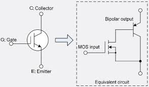 Resistor RB menunjukkan terminal BE dari transistor NPN untuk mengkonfirmasi bahwa Thyristor tidak terkunci, mengarah ke gerendel IGBT. Transistor menunjukkan struktur arus di antara dua sel IGBT yang berdekatan. Memungkin kan MOSFET dan mendukung sebagian besar tegangan. Simbol sirkuit IGBT, yang berisi tiga terminal yaitu emitor, gerbang dan kolektor.