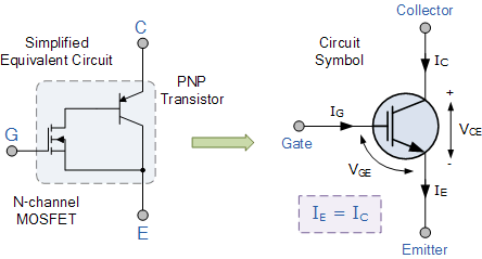 Konstruksi Dasar dari transistor gerbang bipolar yang terisolasi, Rangkaian driver IGBT sederhana dirancang menggunakan PNP dan NPN Transistor, JFET, MOSFET. Transistor JFET digunakan untuk menghubungkan Kolektor Transistor NPN ke Basis Transistor PNP. Transistor menunjukkan Thyristor Parasit untuk menciptakan Loop Umpan Balik Negatif.