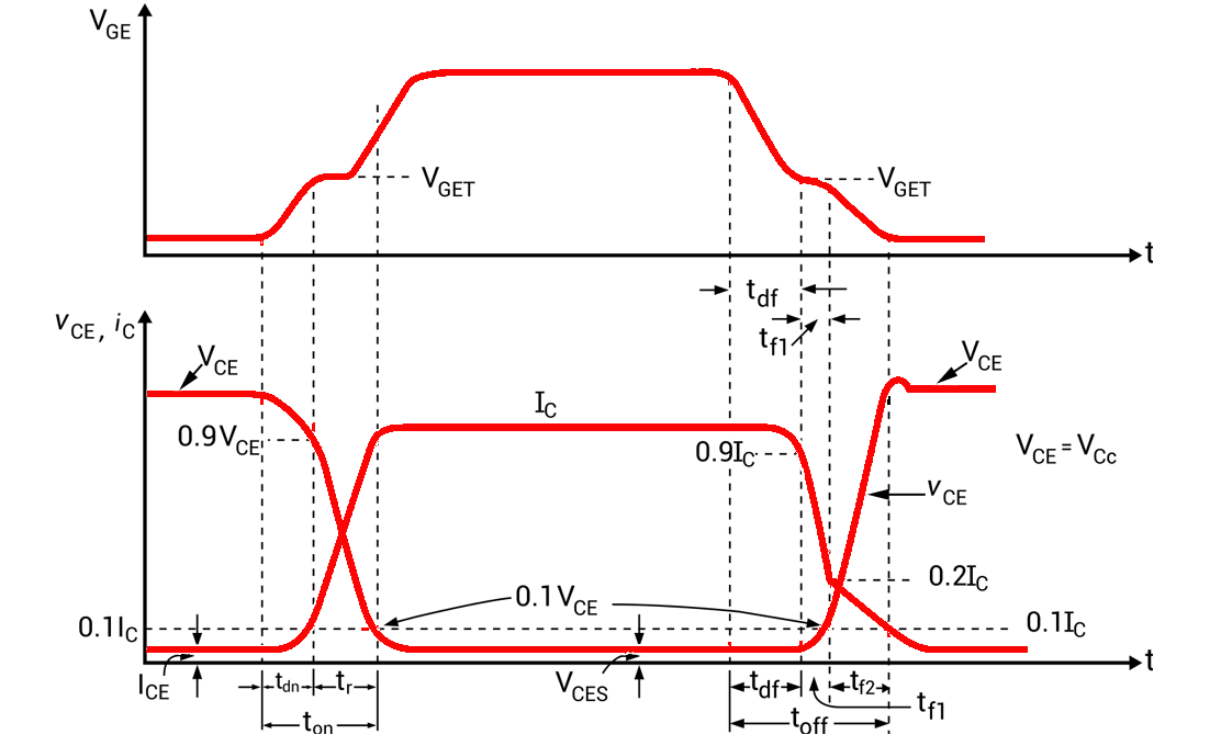 IGBT berubah “ON” atau “OFF” dengan mengaktifkan dan menonaktifkan terminal Gate-nya. Menerapkan sinyal input tegangan positif melintasi Gerbang dan Emitor menjaga perangkat dalam keadaan “AKTIF”.