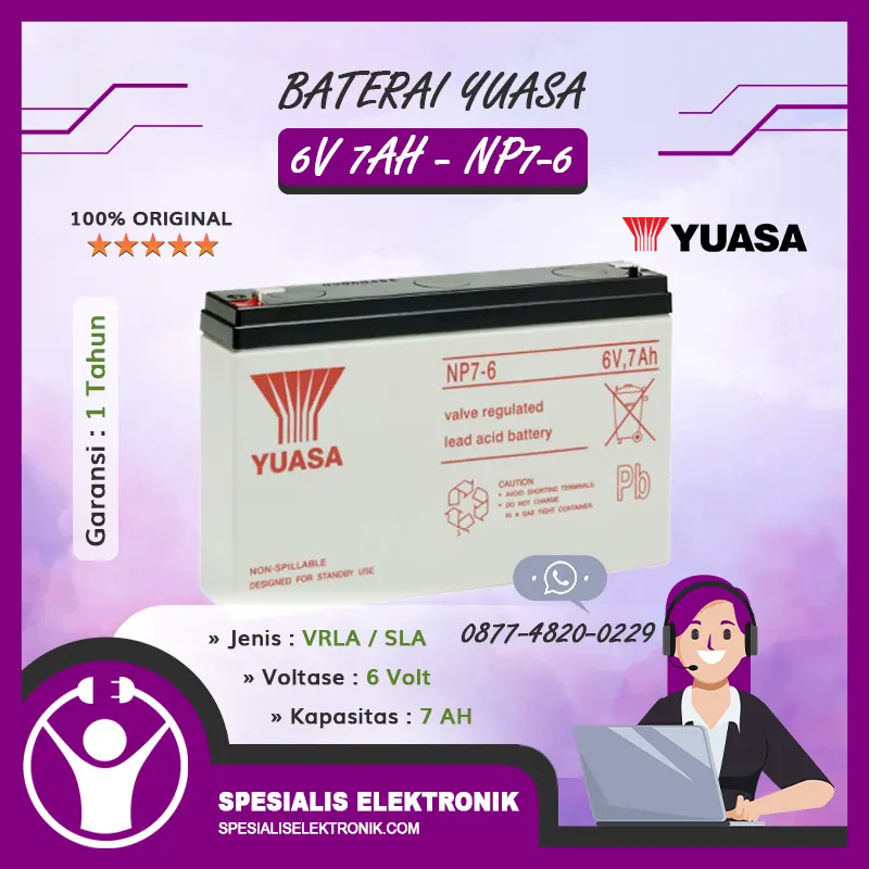 Spesialis Elektronik – Baterai Yuasa 6V 7AH – NP7-6